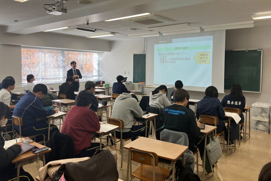 開催テーマ プレストレスト・コンクリートについて 開催日時 令和7年12月9日(火) 10:30~12:00 会場名 専門科目棟-1 3階 4AC教室(対面形式) 参加人数 4年生 32名 概要 プレストレスト・コンクリート建設業協会の紹介